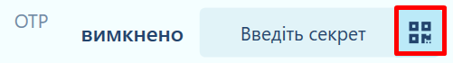 OTP Секрет - Ви можете ввести секретний ключ, на основі якого тут генеруються одноразові паролі. Зазвичай, такий ключ відображається у вигляді QR коду на екрані ПК та має бути відсканованим додатком на телефоні. Наприклад, ось як виглядає налаштування OTP для облікового запису Google: