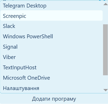 та оберіть одну з програм, що на даний момент запущені на вашому ПК. Якщо програми немає в списку, вона має бути запущена. Виконайте таку ж послідовність для додавання наступної програми.