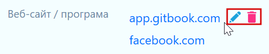 Ви можете додати необмежену кількість веб-сайтів до одного облікового запису. Ви можете видаляти чи редагувати їх, вказавши курсором на строку адреси та натиснувши відповідну іконку.