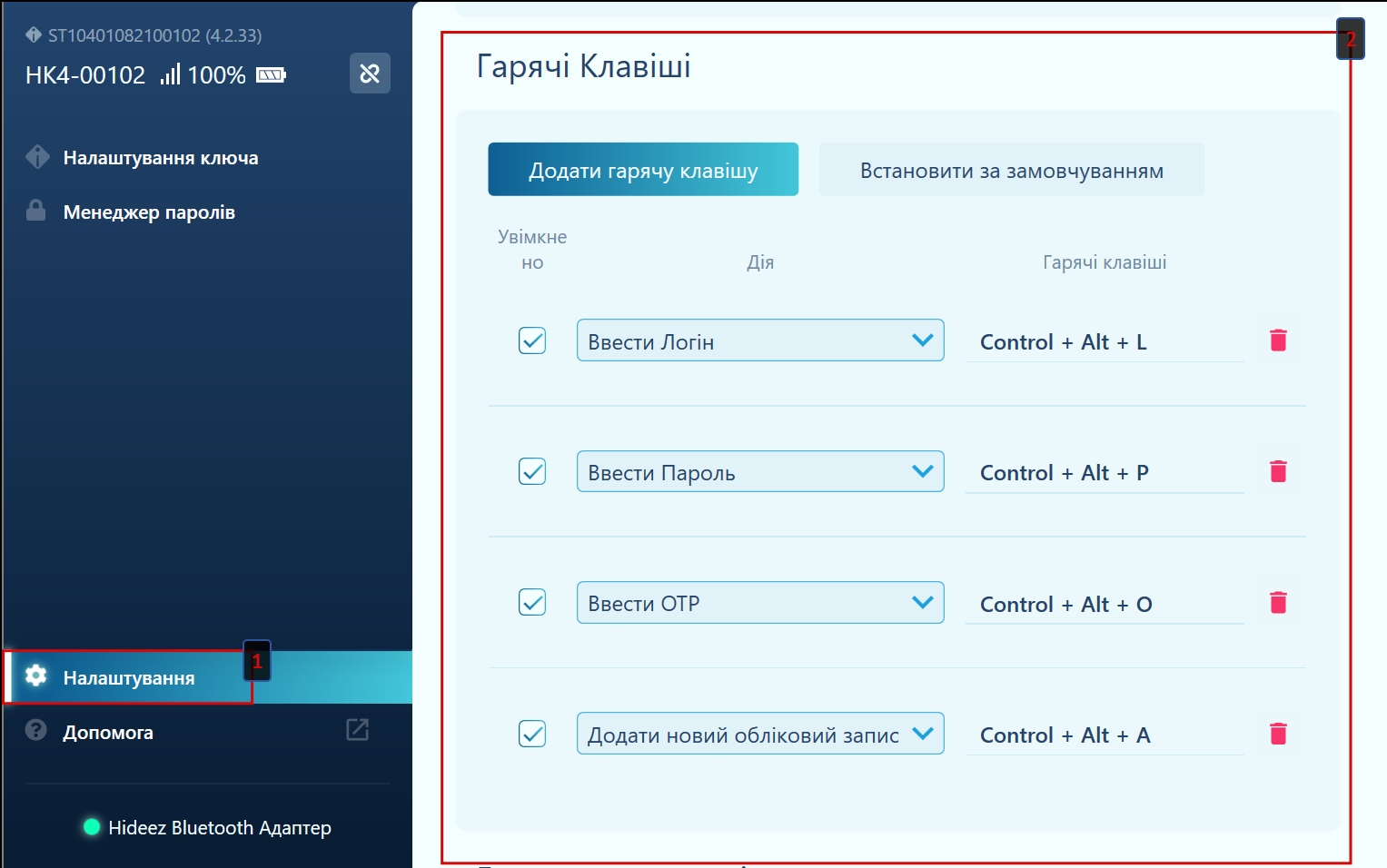 Hideez Key — Налаштування гарячих клавіш