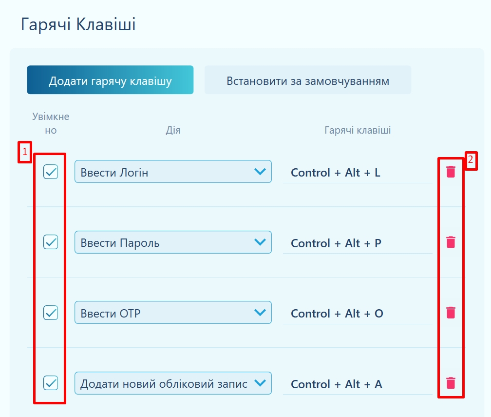 Додавання гарячих клавіш