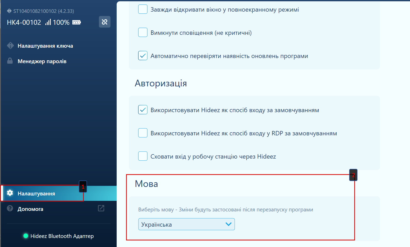 Мову Hideez Client буде змінено автоматично.