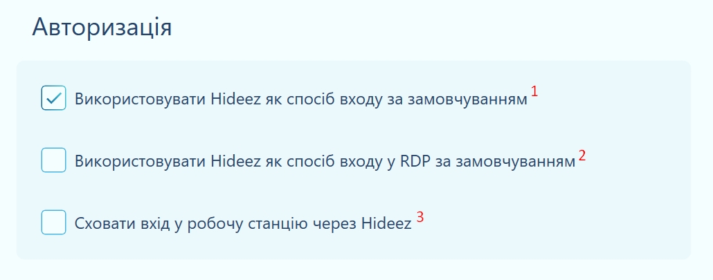 3 - Якщо ви не використовуєте опцію входу на робочу станцію Hideez, ви можете ввімкнути цей параметр