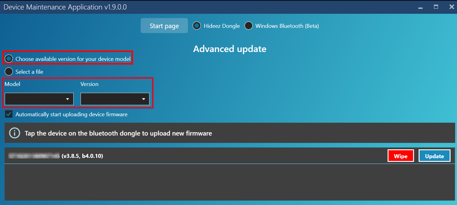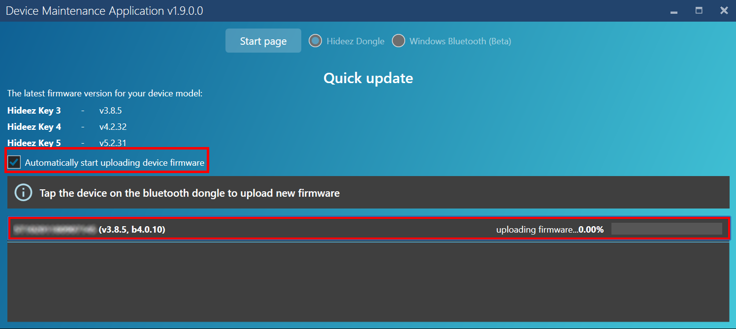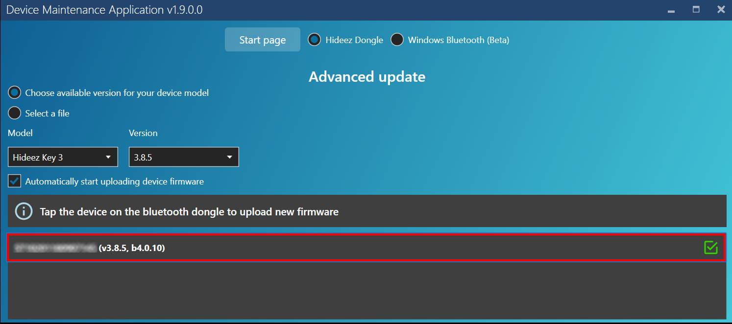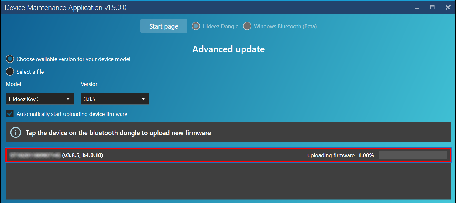 Запустіть Device Maintenance Application та оберіть опцію Hideez Dongle.