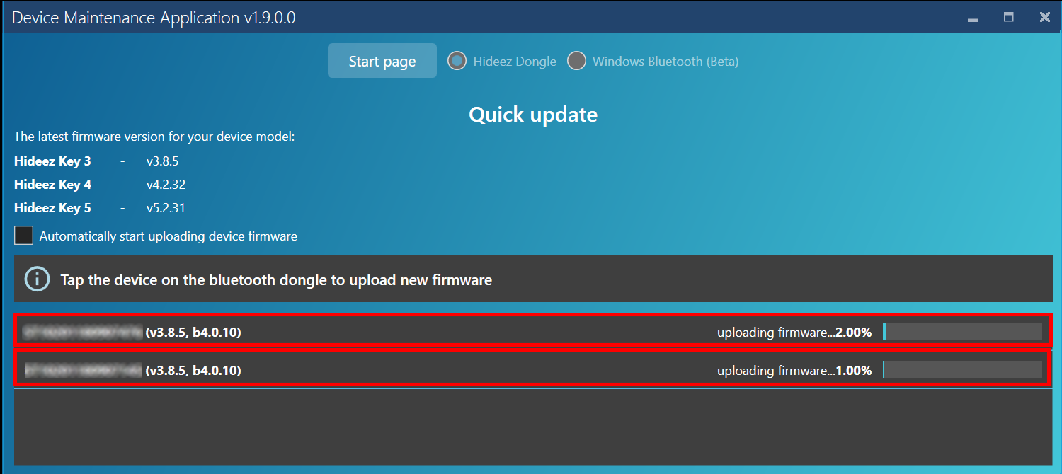 Якщо у Вас є кілька ключів для оновлення, Ви можете оновити їхню прошивку паралельно. Просто увімкніть автооновлення та торкайтеся адаптеру ключами послідовно і чекайте.