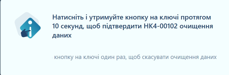 Після підтвердження, кнопка на ключі спалахне жовтим, натисніть та утримуйте її 10 секунд.